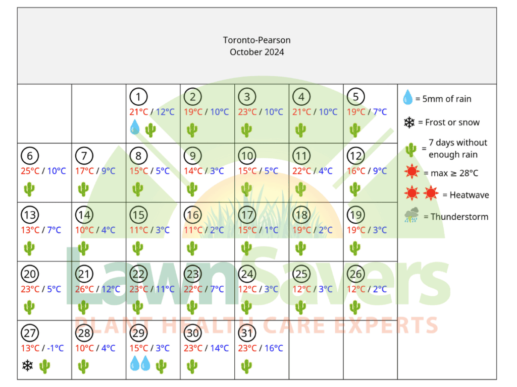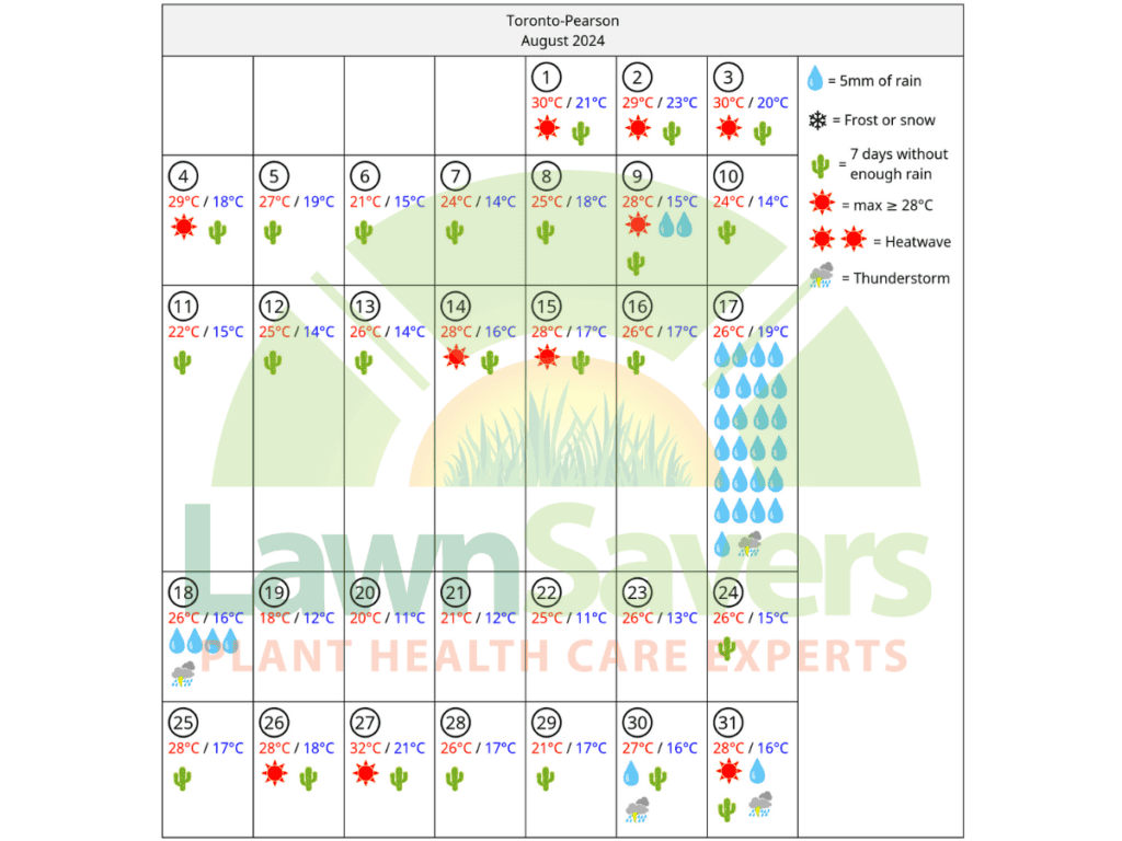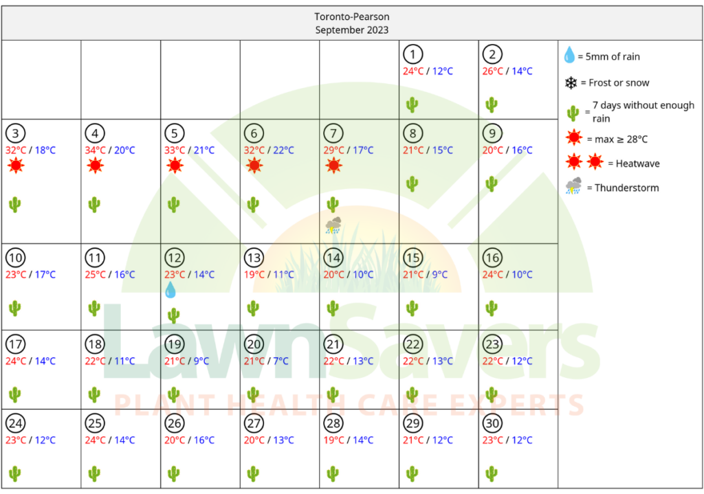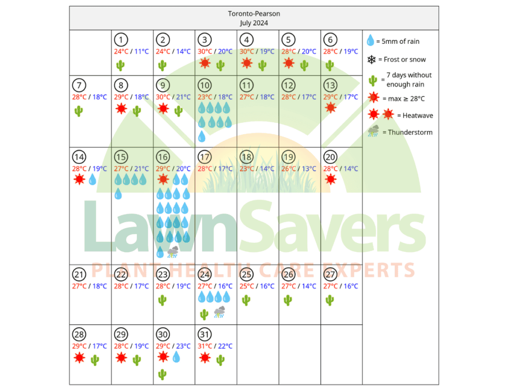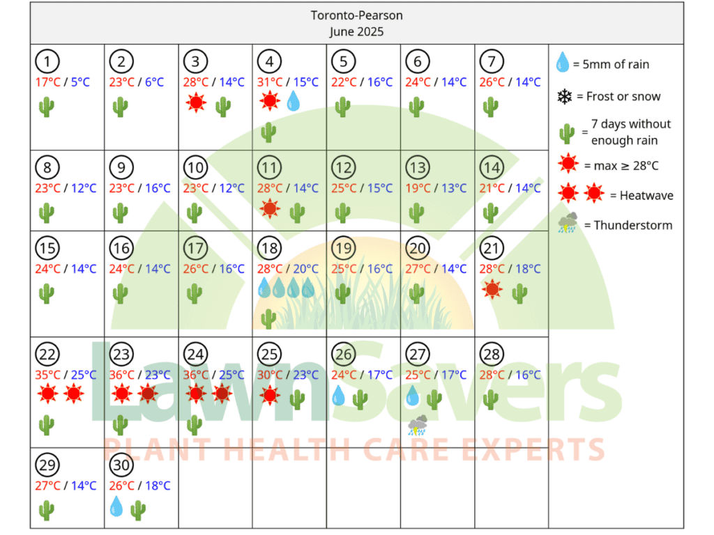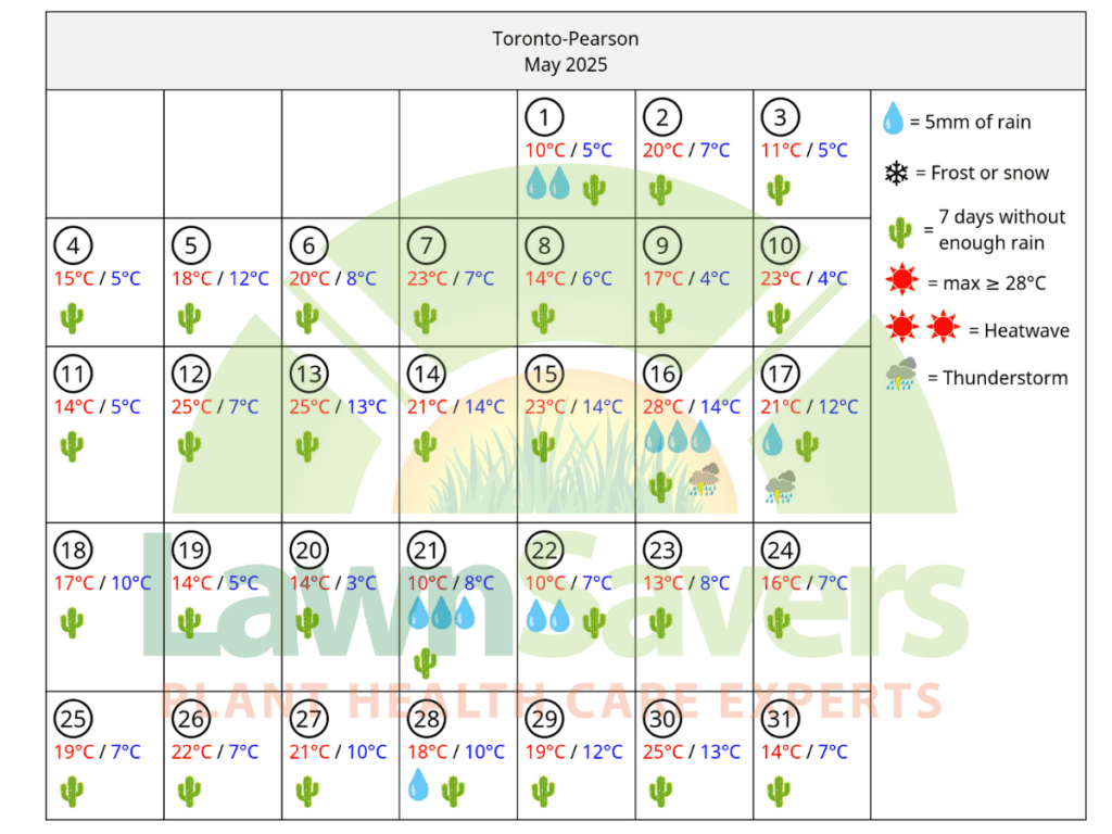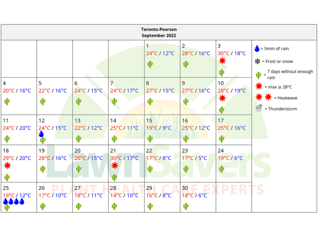 The following data is accurate GTA weather history compiled on behalf of LawnSavers for our clients by an Independent Meteorologist based in Ontario for the Greater Toronto Area.